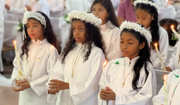 Anualmente apoyamos a una comunidad de niños y niñas de barriadas humildes, con la organización y celebración de la Primera Comunión, ofreciéndoles un desayuno en compañía de sus allegados, promoviendo la devoción en la Virgen de Guadalupe.